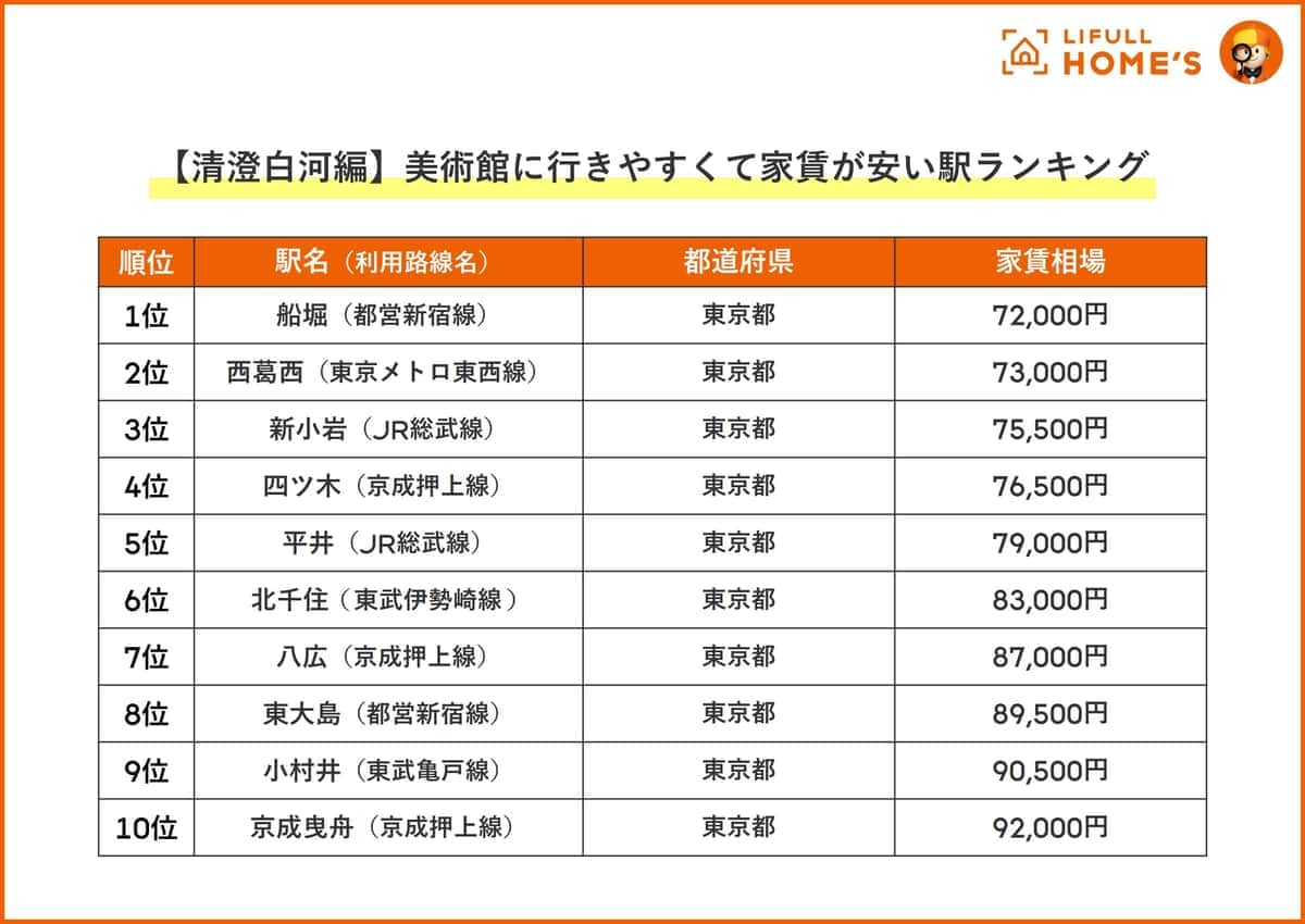 「美術館に行きやすくて家賃が安い駅ランキング」 【清澄白河】に行きやすい家賃の安い5駅は?