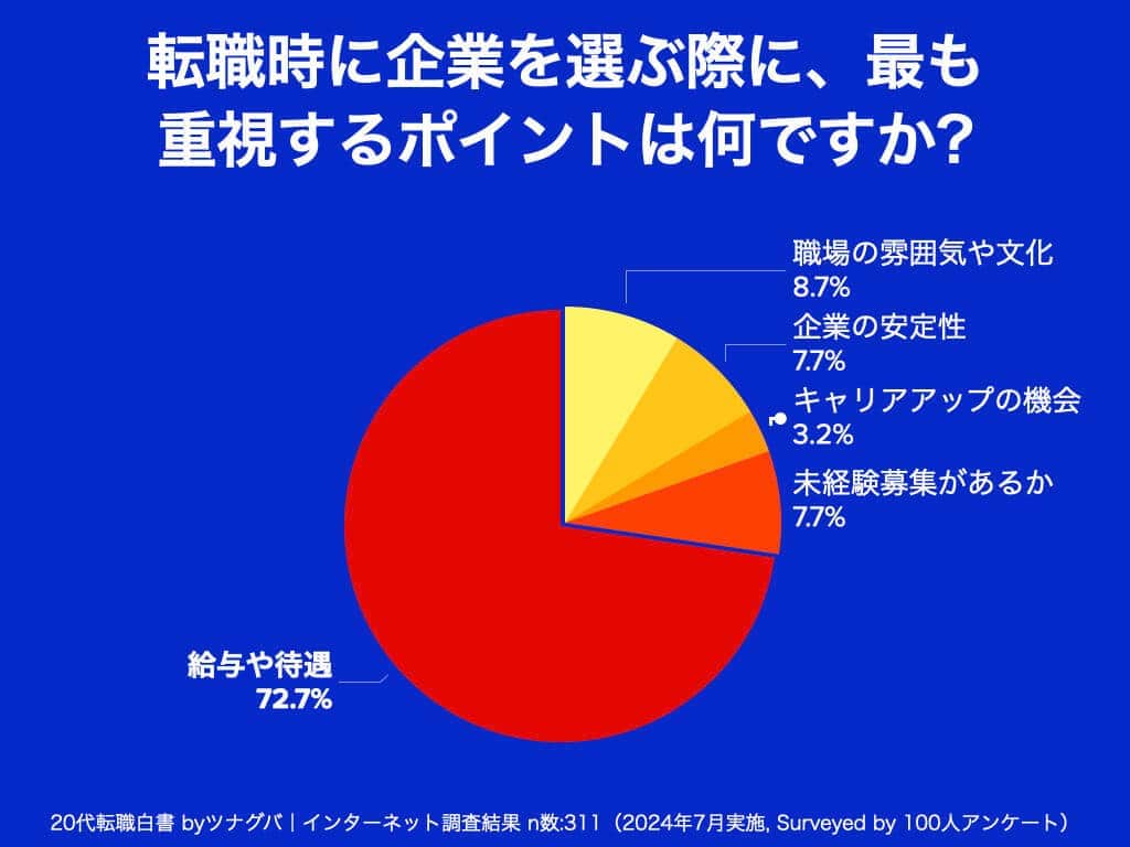 転職の企業選びのポイント 20代は「給与や待遇」72.7%で最多に