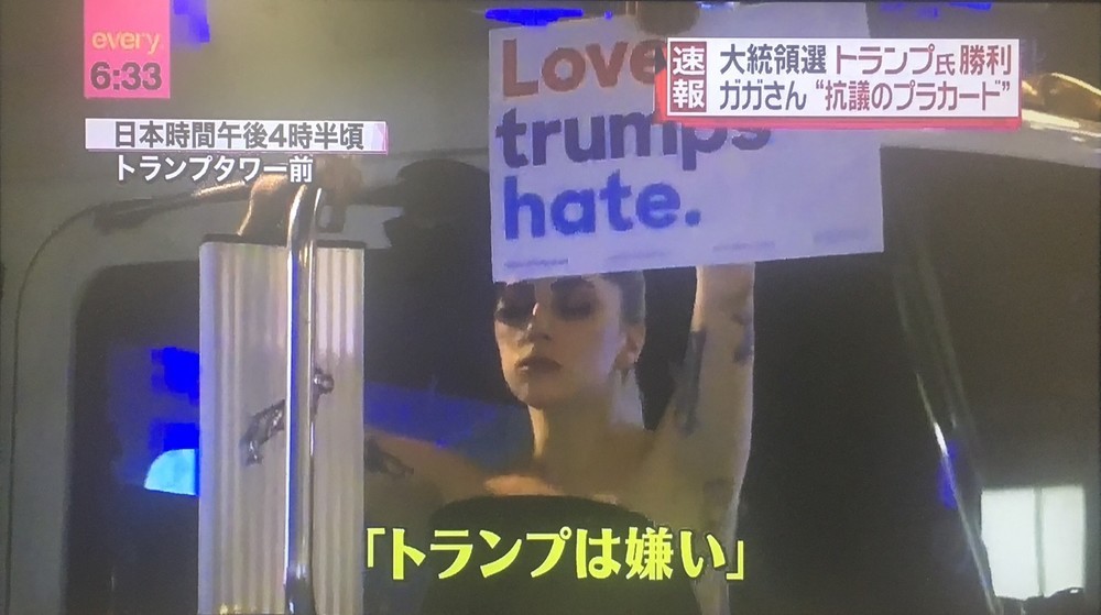 ガガ大迷惑の日テレ「酷過ぎる」誤訳 「Love trumps hate」を「トランプ嫌い!」