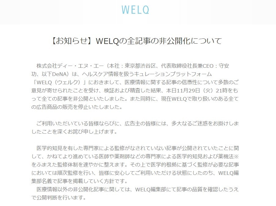 WELQトップページの現在(30日19時時点)