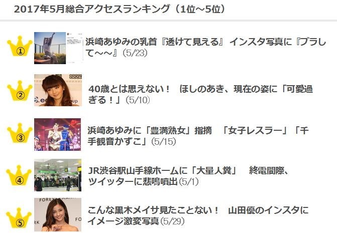 J-CASTニュースランキング 5月は「浜崎あゆみ」が話題
