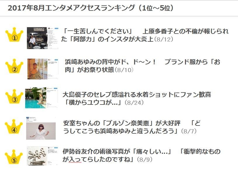 J-CASTニュースランキング 8月は「24時間テレビ」と「上原多香子」が注目大