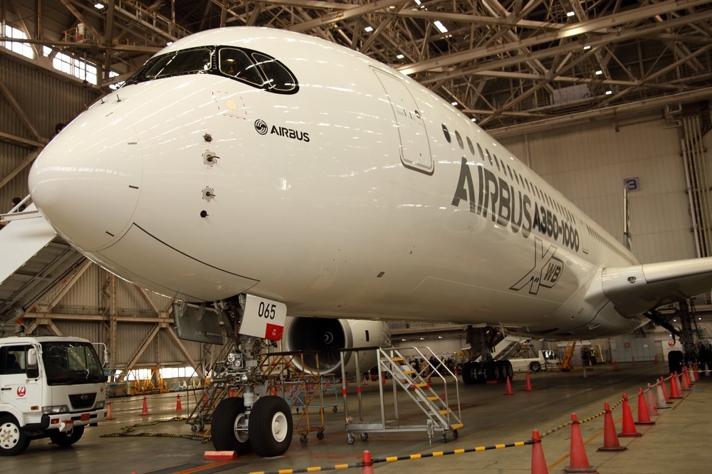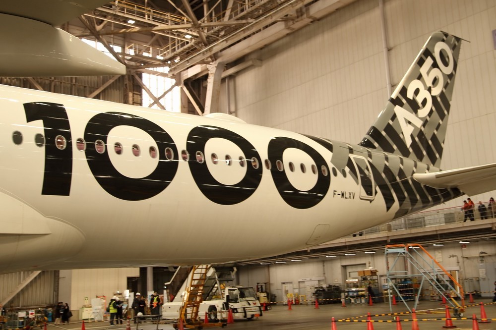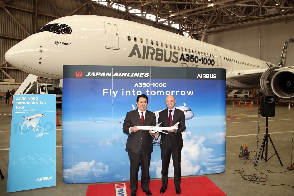 777後継「エアバスA350-1000」初飛来 JAL社長は「ノートラブル」に期待