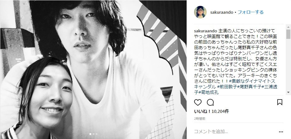 子守り中の夫・柄本佑さんのパネルと(画像は安藤さんインスタグラムより)
