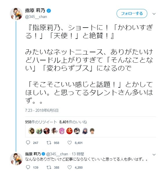 指原莉乃、ネットニュースに一言 「かわいすぎる」「絶賛」的な見出しは...