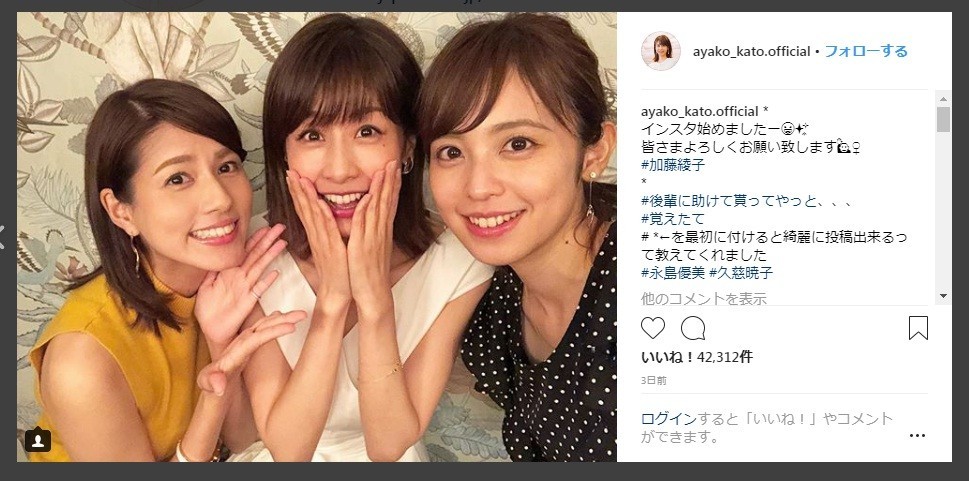加藤綾子インスタ開始5日でフォロワー15万人! 「フリー転向後影薄いな」との声を払拭か