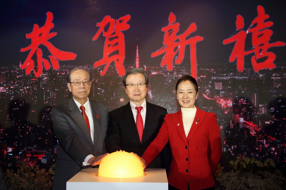 東京タワー、「春節」カラーにライトアップ! 安倍首相も中国語で「明けましておめでとう」
