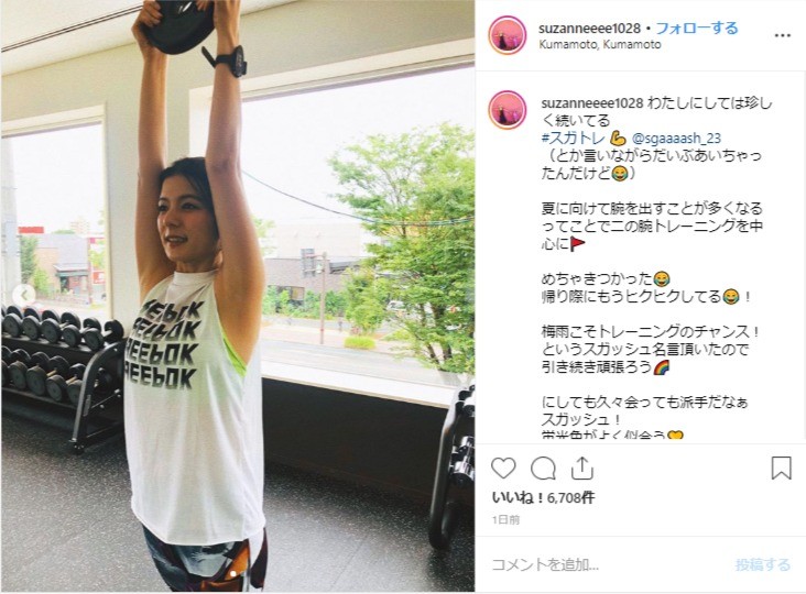 スザンヌ、夏に向け筋トレに励む 「梅雨こそトレーニングのチャンス!」と助言され...