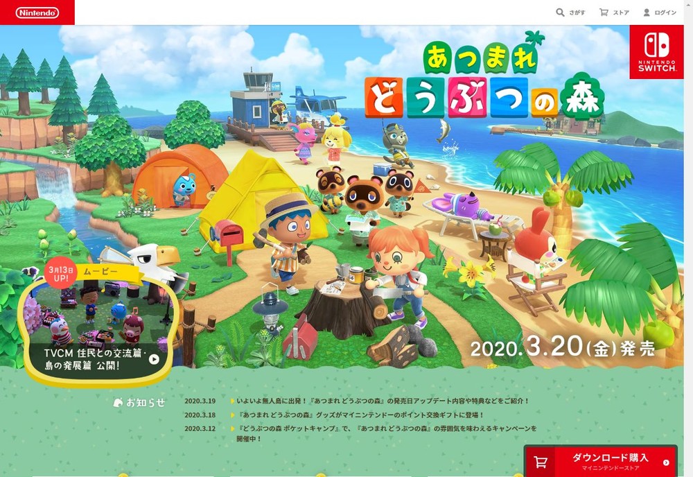 「あつまれ どうぶつの森」公式サイト。実況動画が話題に