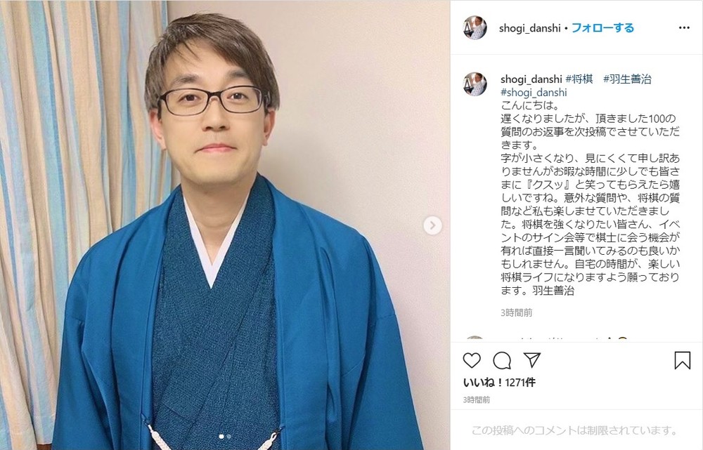 羽生善治「美肌」インスタを夫人が種明かし 「それを世間ではノロケいいます」