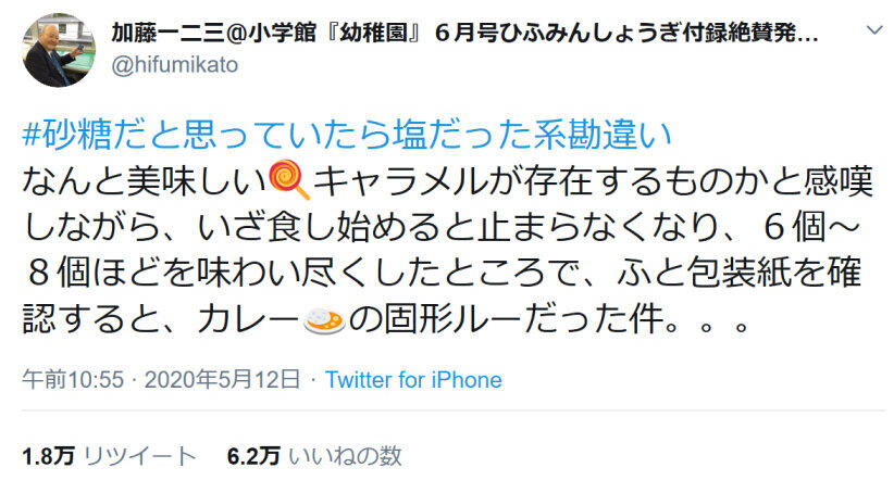 ひふみん、「#砂糖だと思っていたら塩だった~」参戦 キャラメル6~8個のつもりが...
