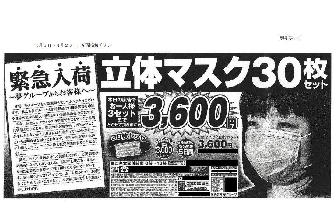 問題視された新聞折り込み広告の例(埼玉県報道発表資料より)