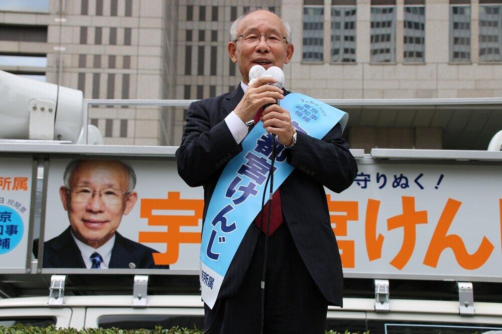 宇都宮健児氏「『地味』を最大限ウリにして...」 都庁前で第一声、「弱者への思い」強調