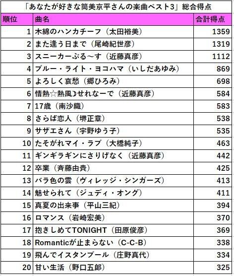 「最も好きな曲」アンケート結果