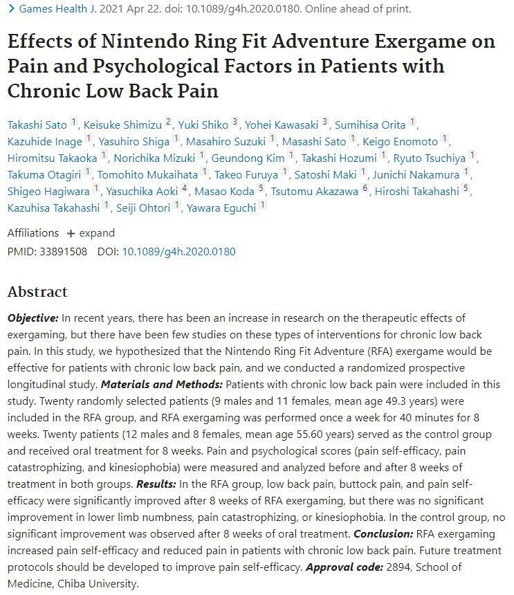 任天堂「リングフィット」が腰痛などに効果 論文が学術誌に掲載、研究者「稀有な治療デバイス」