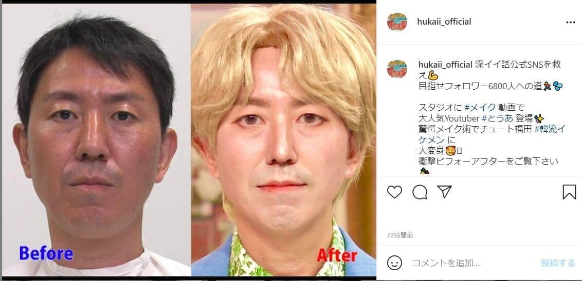チュート福田が韓流イケメンに! 雰囲気激変のBTS風メイクに「誰やねんこれw」