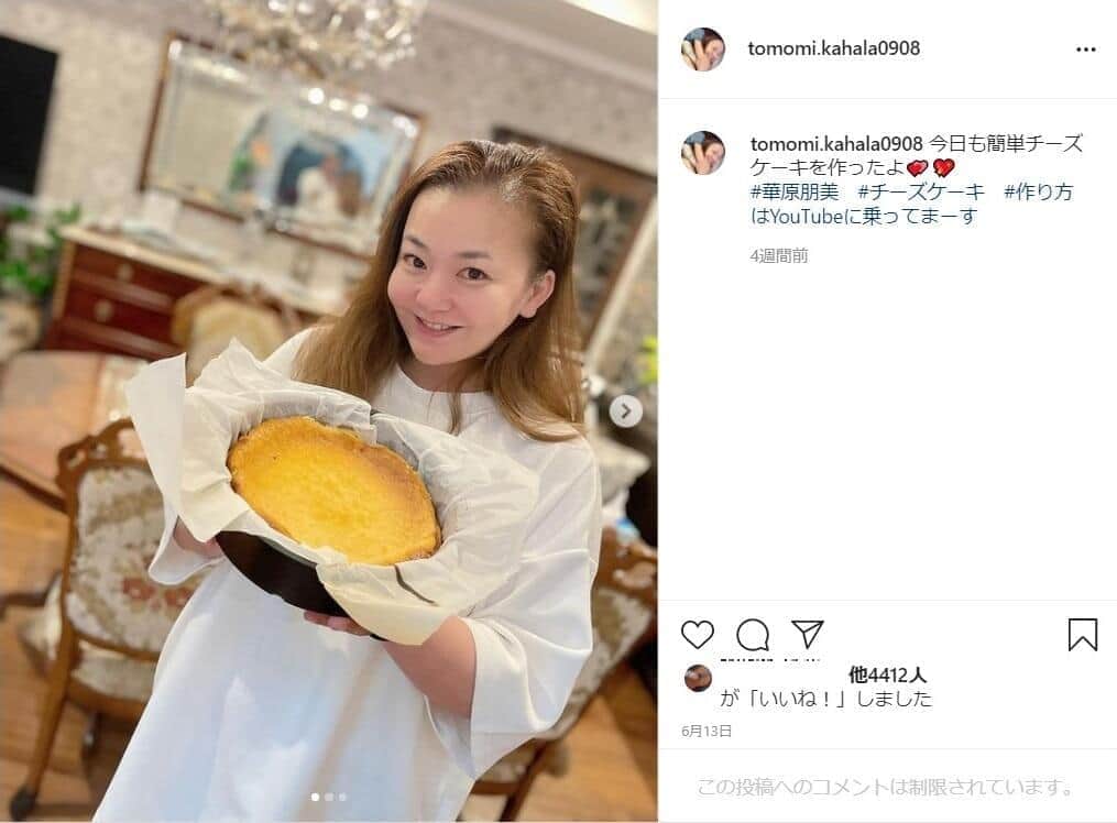 チーズケーキを作る過程を自身のYouTubeチャンネルで視聴するよう呼びかける華原朋美さん(本人のインスタグラムから)