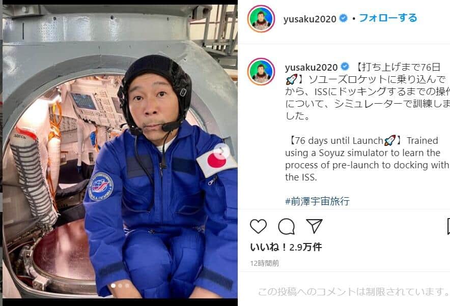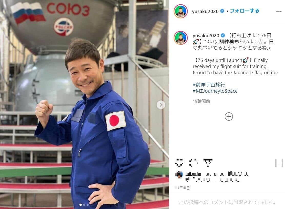 前澤友作氏、宇宙旅行の訓練着姿を披露 「日の丸ついてるとシャキッとするね」