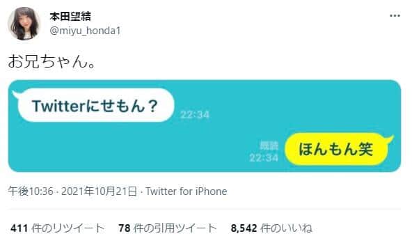 本田望結、兄から「まさかの疑惑」かけられる 開設直後のツイッター巡り...ファン「ほっこりする」