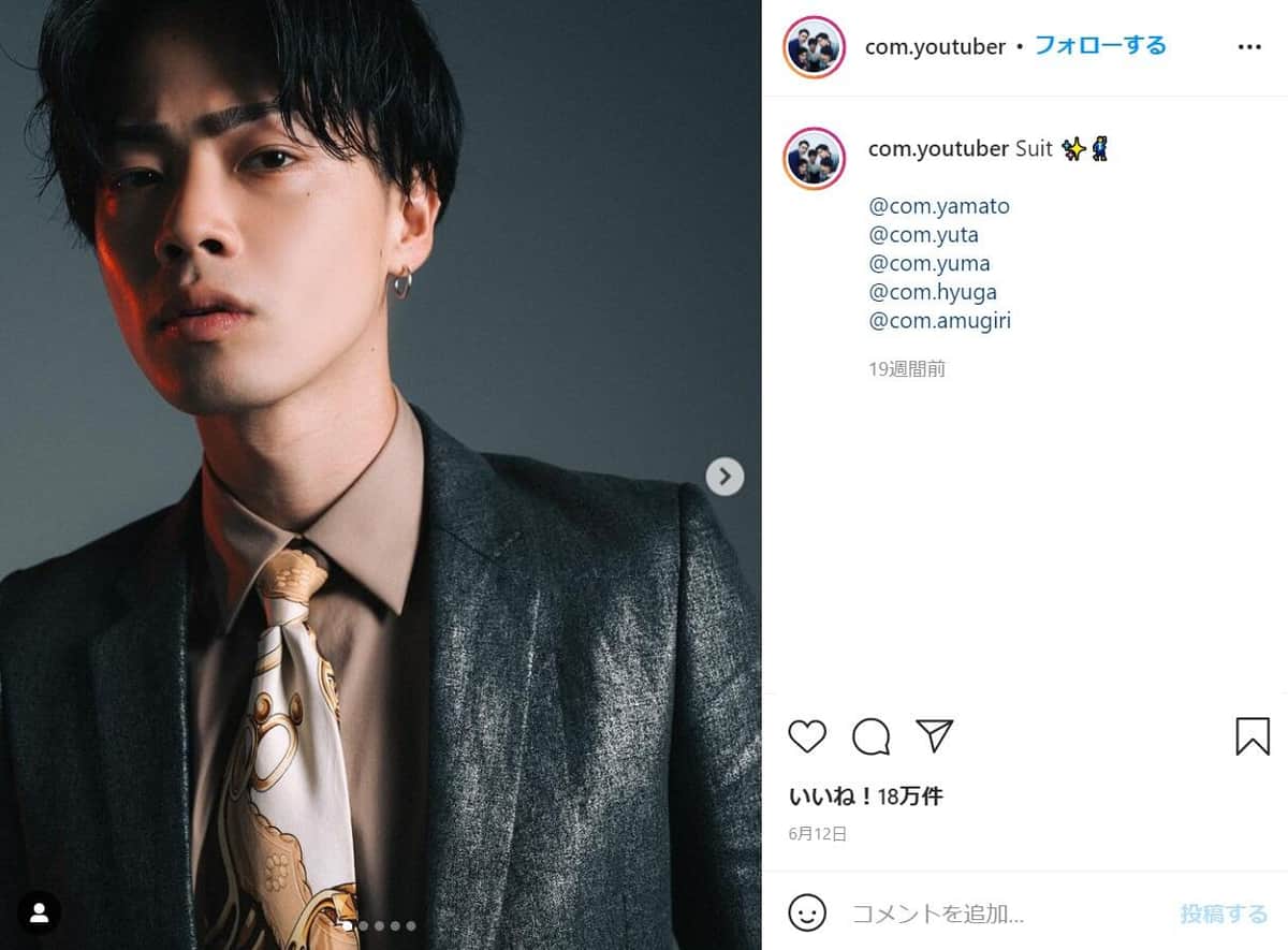やまとさん。コムドットのインスタグラム(@com.youtuber)より