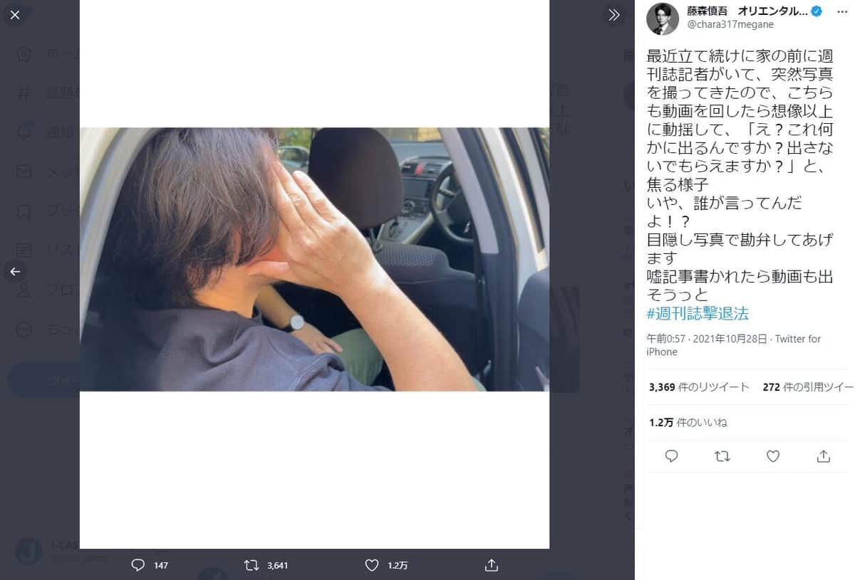 オリラジ藤森、週刊誌記者の「逆ギレ」に呆れ 顔写真も公開「目隠しで勘弁してあげます」