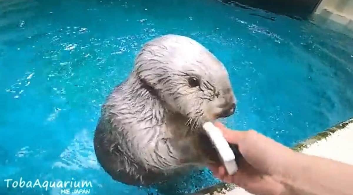 虜になる人続出...ラッコのメイちゃん「四次元ポケット」動画 仕掛けは?鳥羽水族館に聞いた