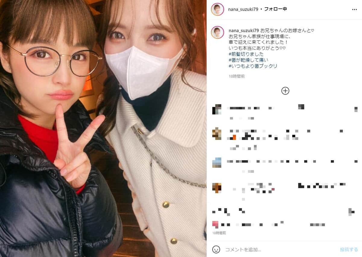 「お兄ちゃんのお嫁さん綺麗すぎ」 鈴木奈々、義姉との顔アップ2ショットに反響