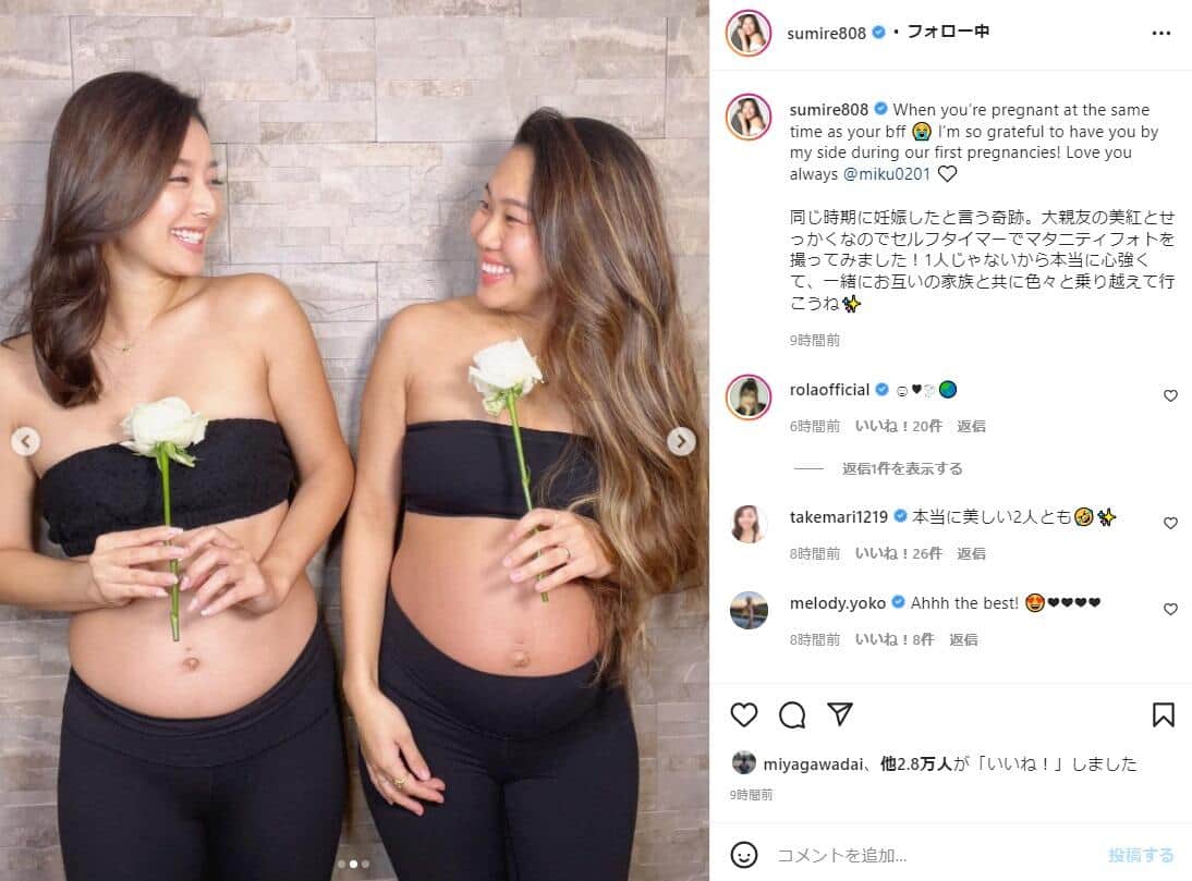 「えぇ!もうこんなに大きく」「女神にしか見えない」 すみれのマタニティフォトに反響