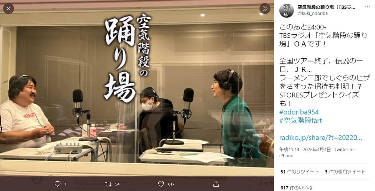 空気階段の踊り場公式ツイッター(@kuki_odoriba)より