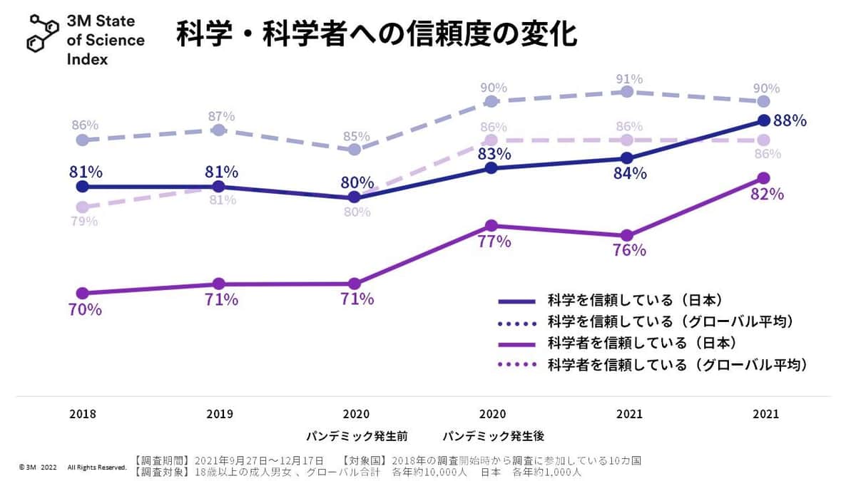 スリーエムは、日本での科学への信頼度は上昇傾向にあると発表