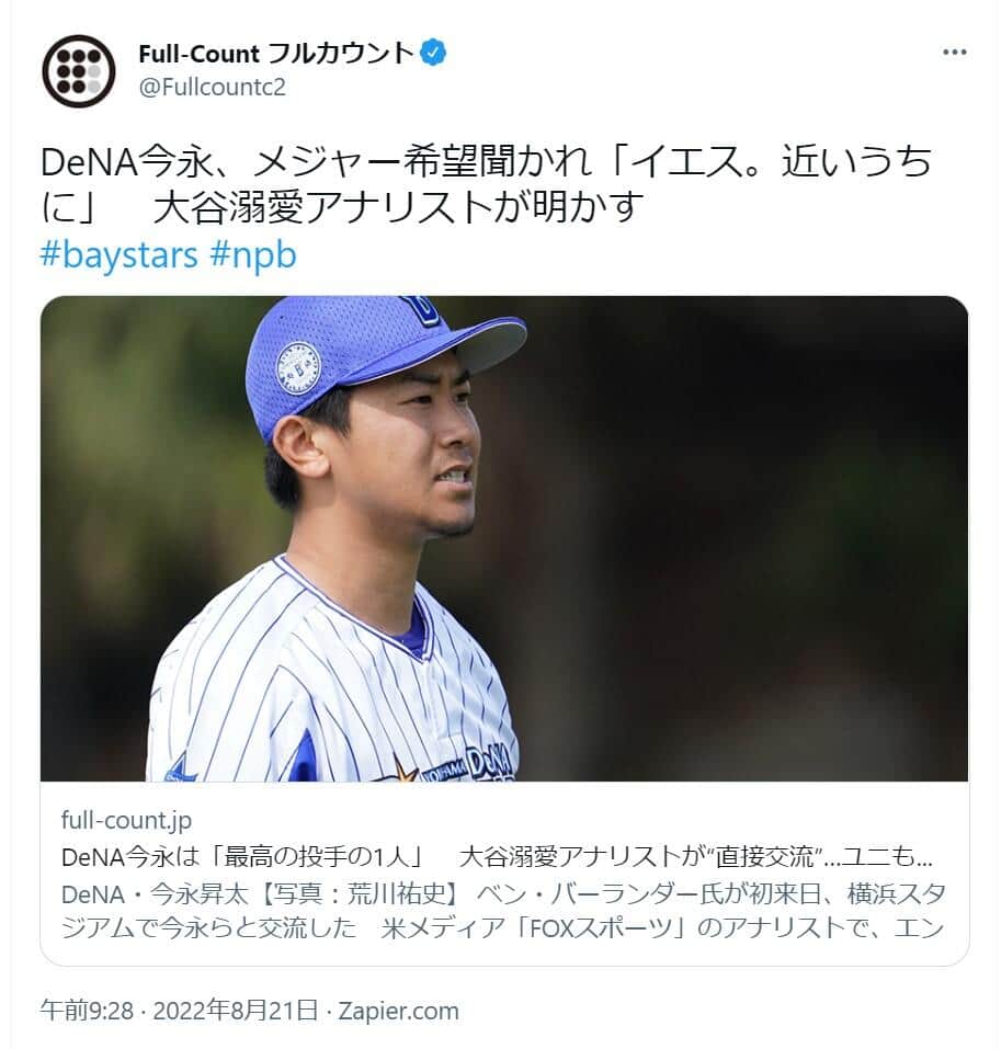 DeNA今永昇太「メジャー宣言」報道にファン衝撃も... 情報源が否定、配信元が訂正・謝罪