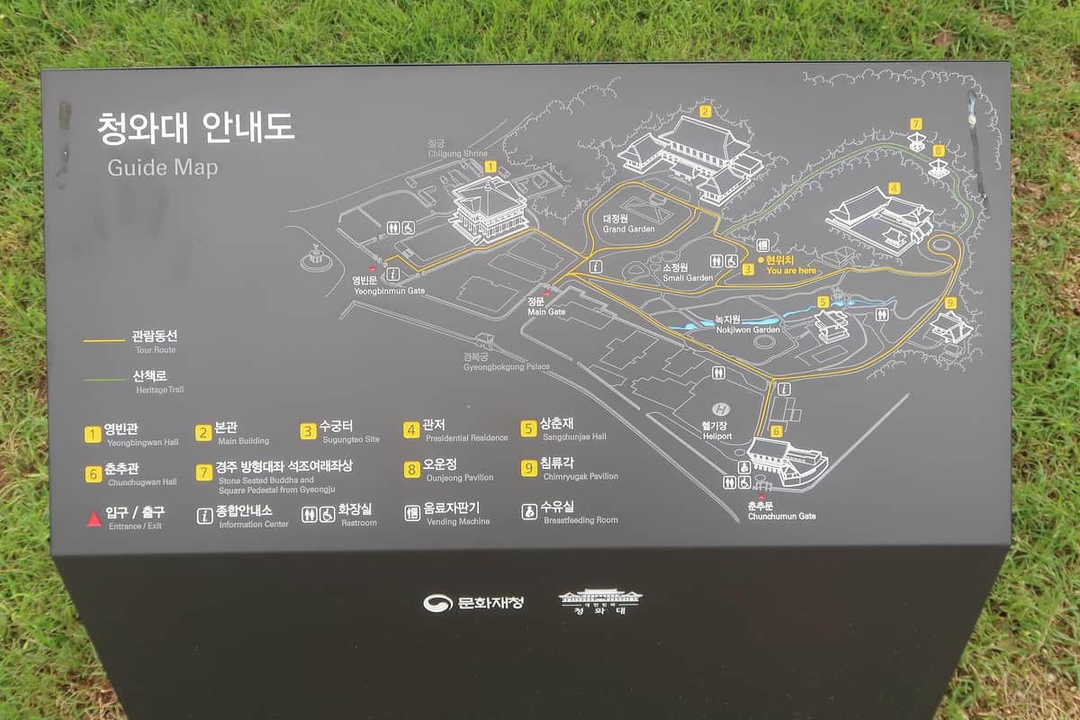青瓦台の案内図。現時点で9つの施設が公開されている