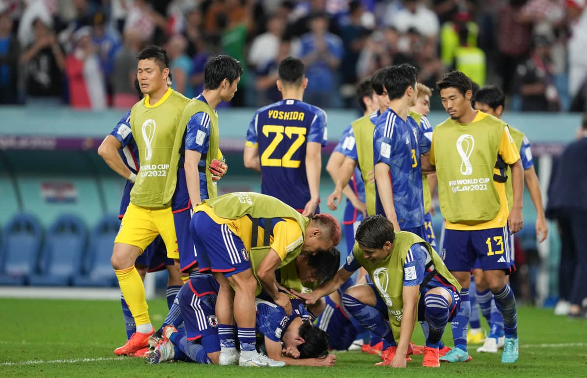 PK戦の末敗れた日本代表(写真:新華社/アフロ)
