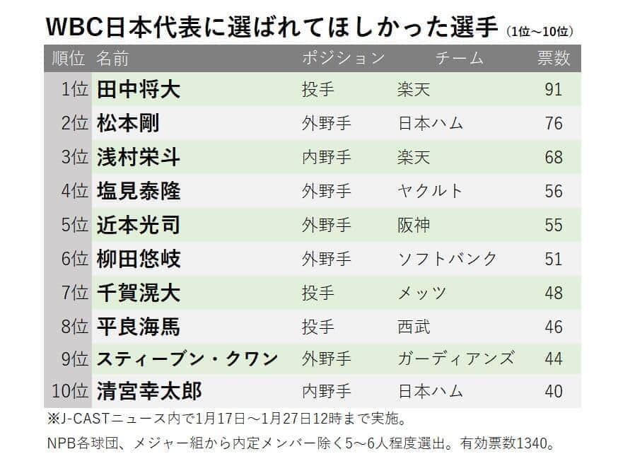 WBC日本代表に「選ばれてほしかった選手」は誰? 読者投票の結果、1位に輝いたスターの名前