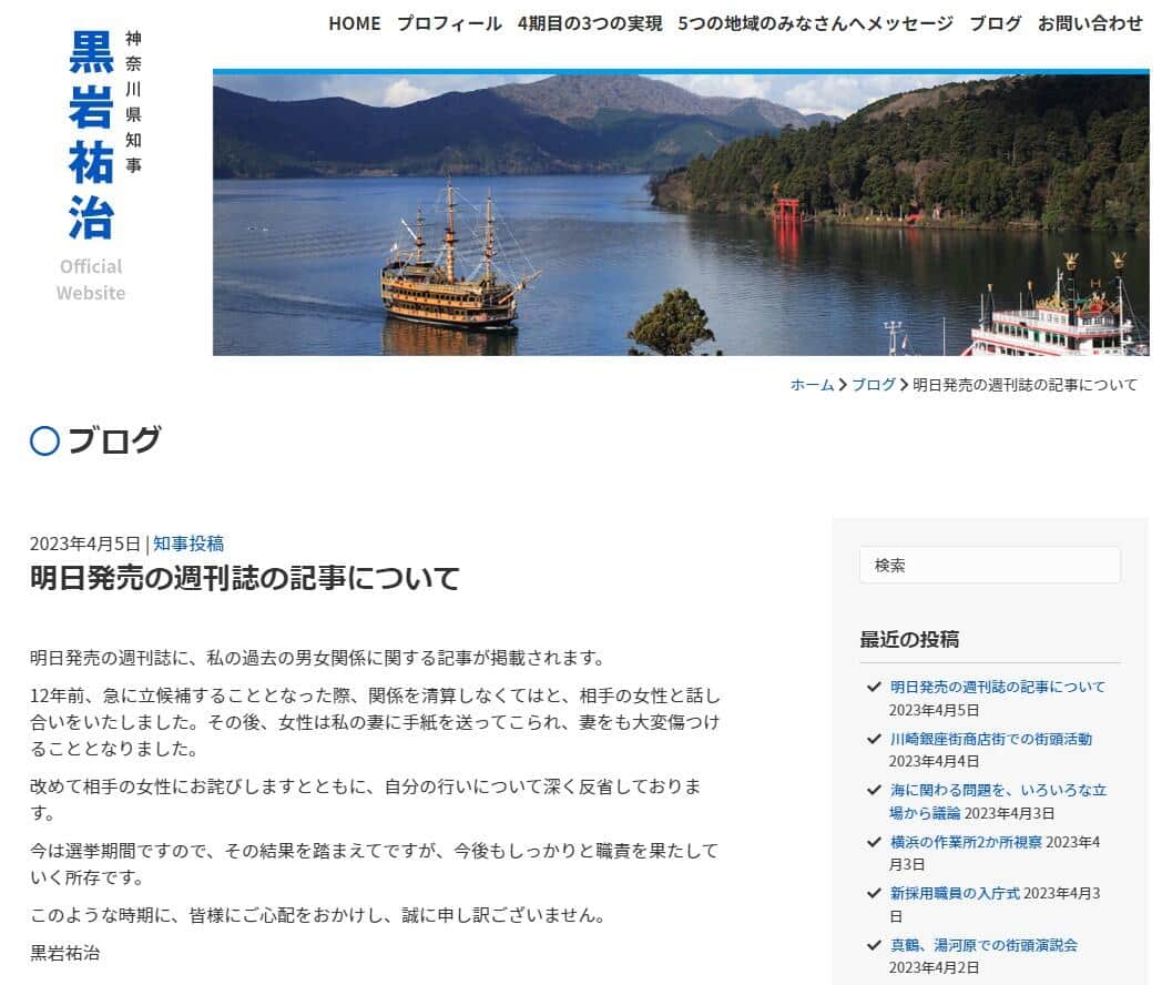 「11年不倫」報道の黒岩祐治知事が謝罪 「深く反省」「今後もしっかりと職責果たす所存」