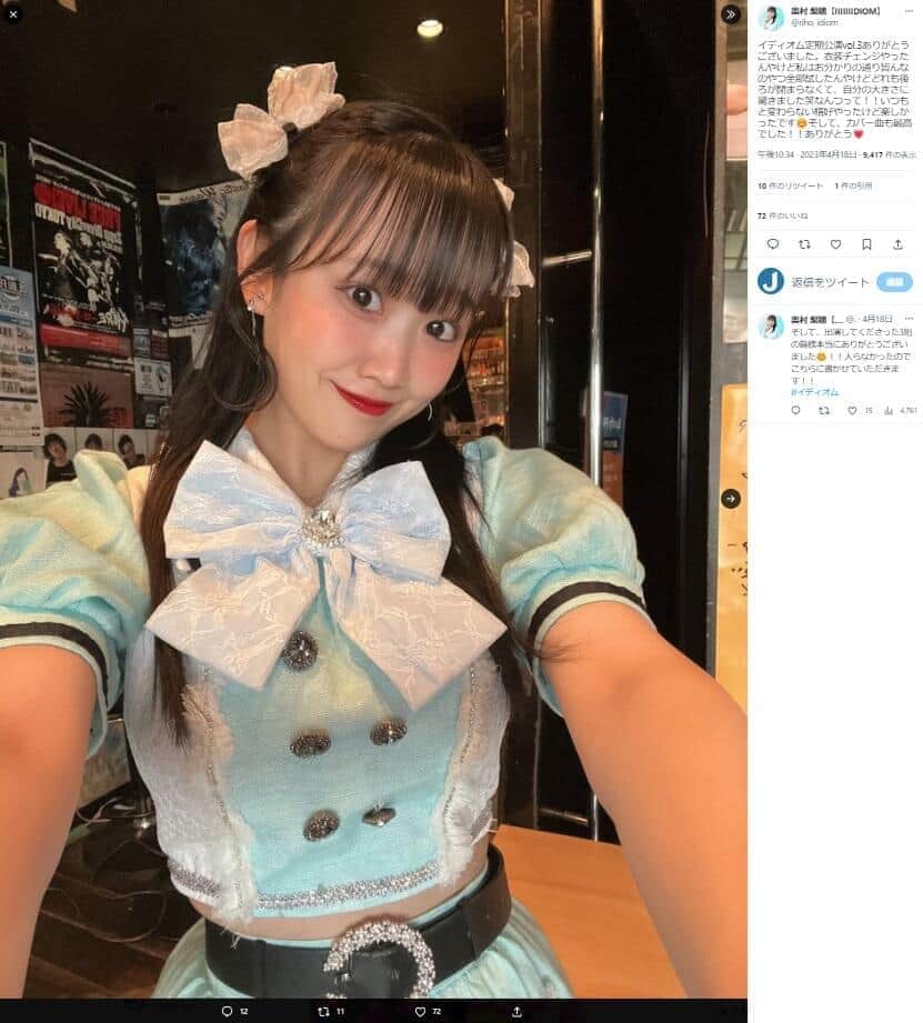 「IIIIIIIDIOM」奥村梨穂さんのツイッター(@riho_idiom)より