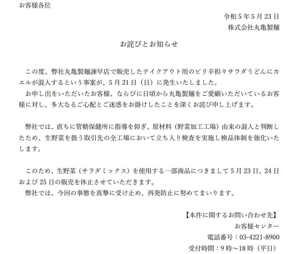 上野樹里、丸亀製麺カエル混入騒動に意味深投稿 「入ってたのか入れたのかは伝わらない」