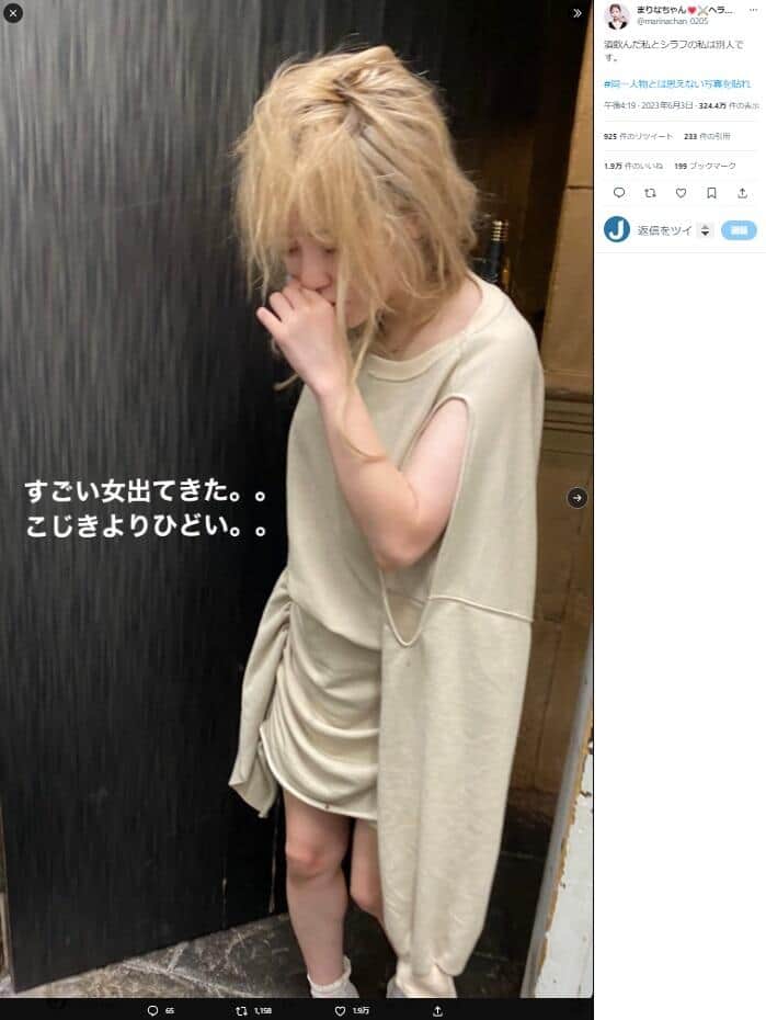 「別人w」「どうしてこんな髪型に」 泥酔した人気女性YouTuber、普段とのギャップにネット衝撃