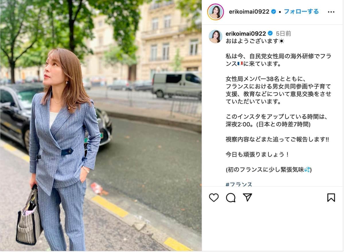 「税金無駄遣い」騒動の今井絵理子議員、「中傷DM」被害明かす フランス研修は「これからも積極的に行きたい」