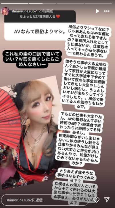「AVなんて風俗よりマシ」に人気セクシー女優、猛反論 「どの仕事も大変やねん」「見えない大変さと苦労が沢山ある」