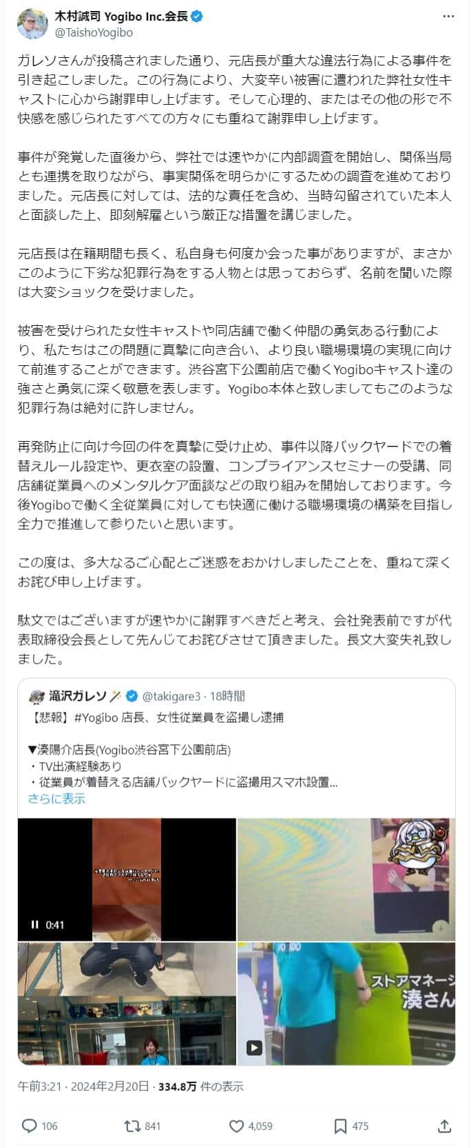 「Yogibo」元店長、従業員の着替え盗撮&女性客の胸を覗く... 木村会長謝罪「勾留されていた本人と面談、即刻解雇」
