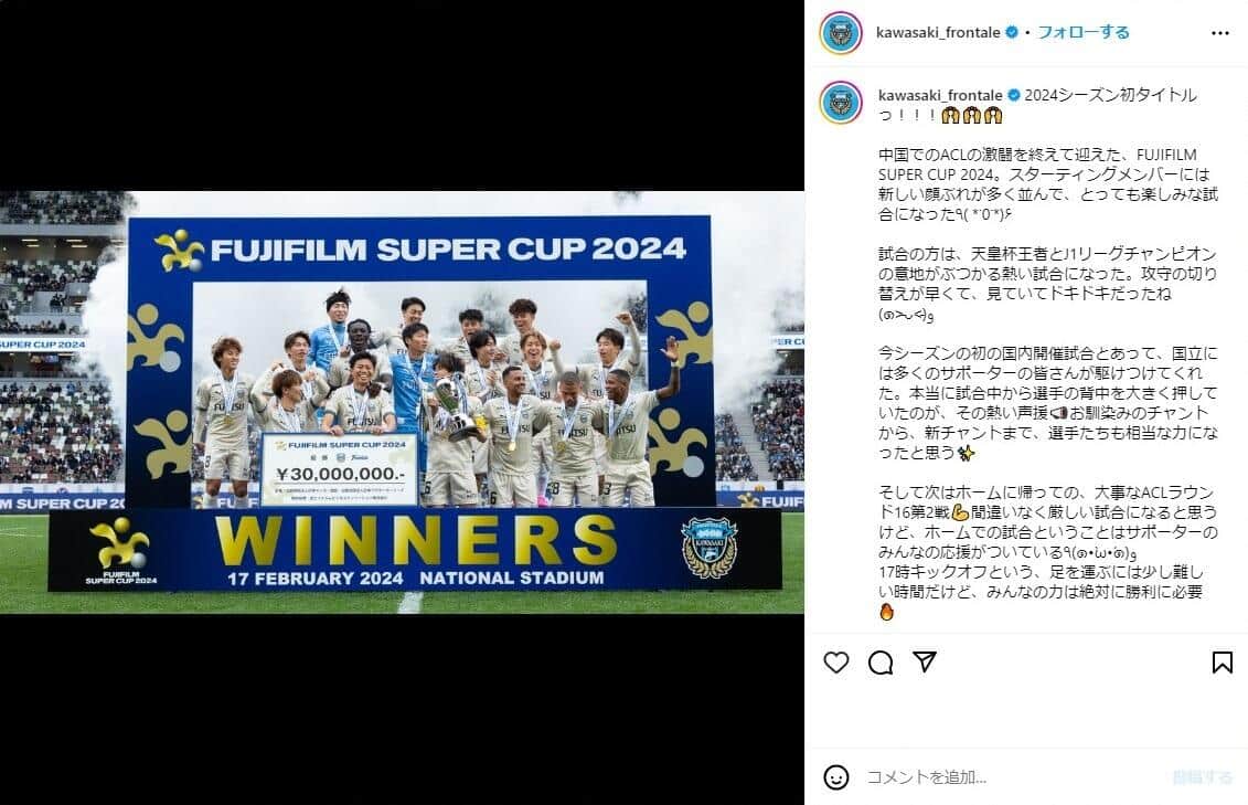 期待値低かった山東泰山、川崎Fに勝利で中国メディア大興奮 「思わず涙」「中国サッカーの起爆剤に」