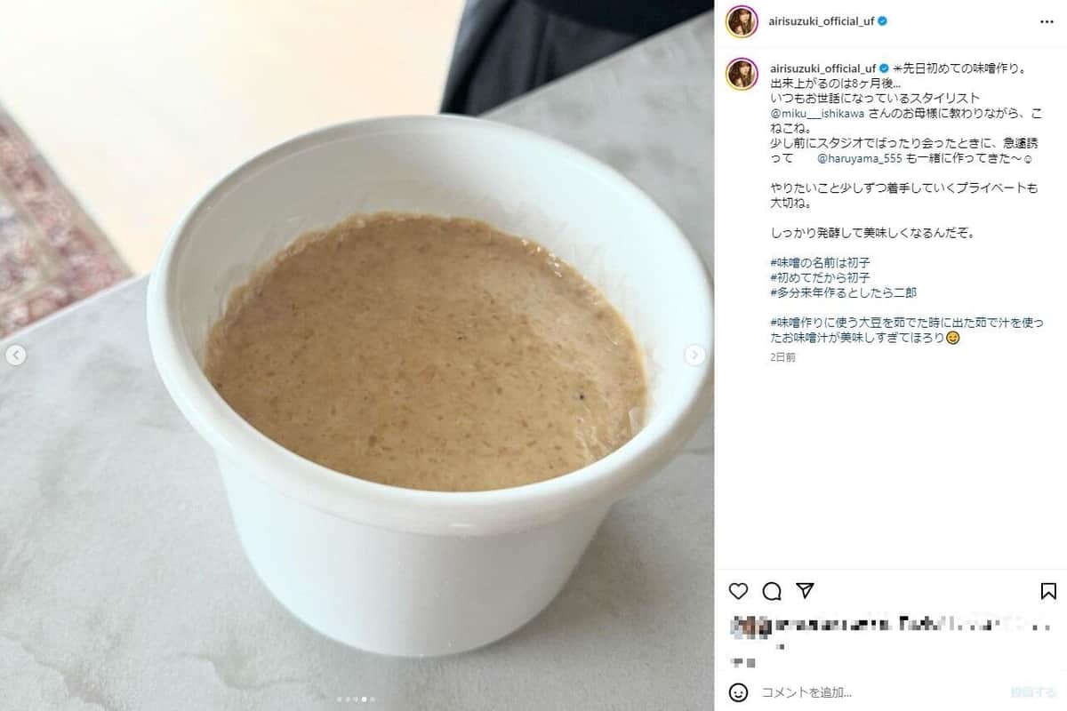 鈴木愛理、人気バンドボーカルと「味噌作り」に初挑戦 「プライベートも大切ね」「美味しくなるんだぞ」