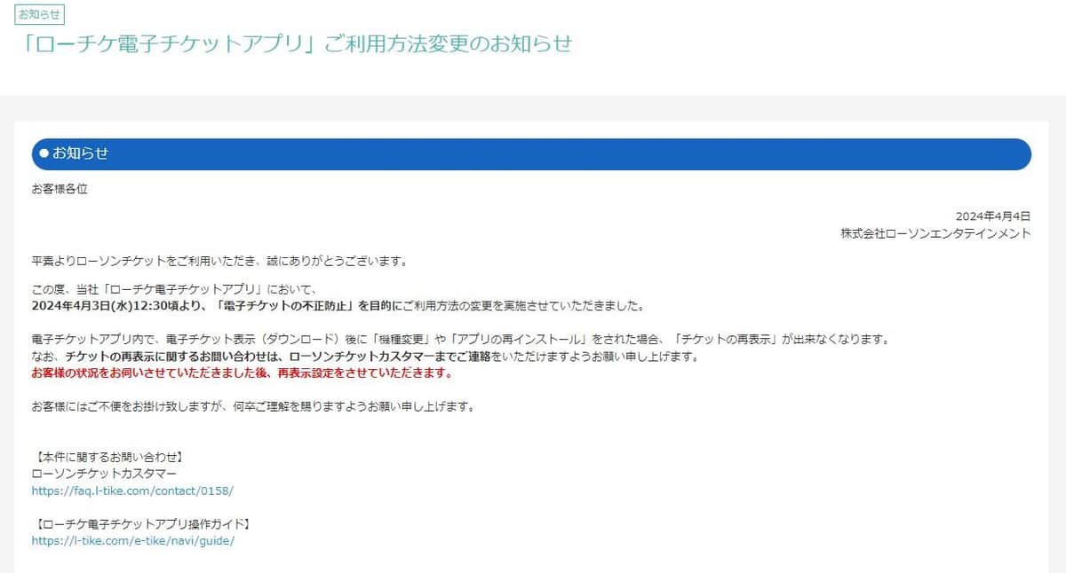 機種変で電子チケット「消える」?ローチケ仕様変更に大ブーイング 運営会社「誤解を招く表現」と陳謝、公式サイトで補足説明