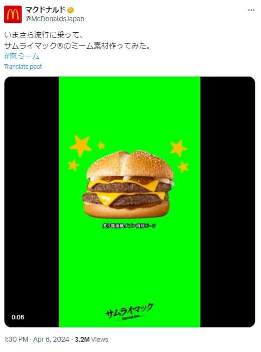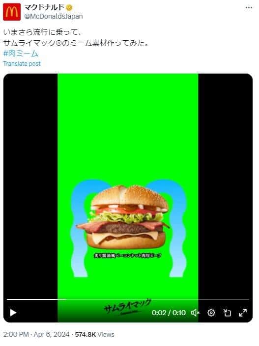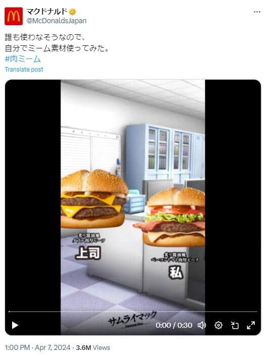 「これは流行らなそうw」 マクドナルドのX、まさかの「肉ミーム」動画を公開...ネット沸く