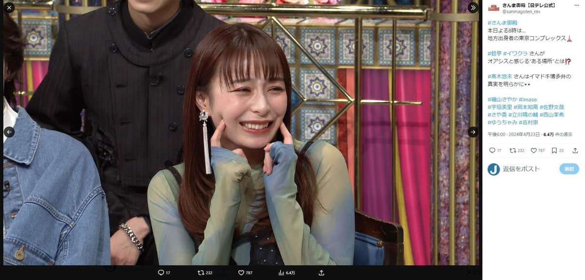 「一目惚れしてしまいました」 宇垣美里、テレビ出演で美しさに反響「まじで好き可愛い」
