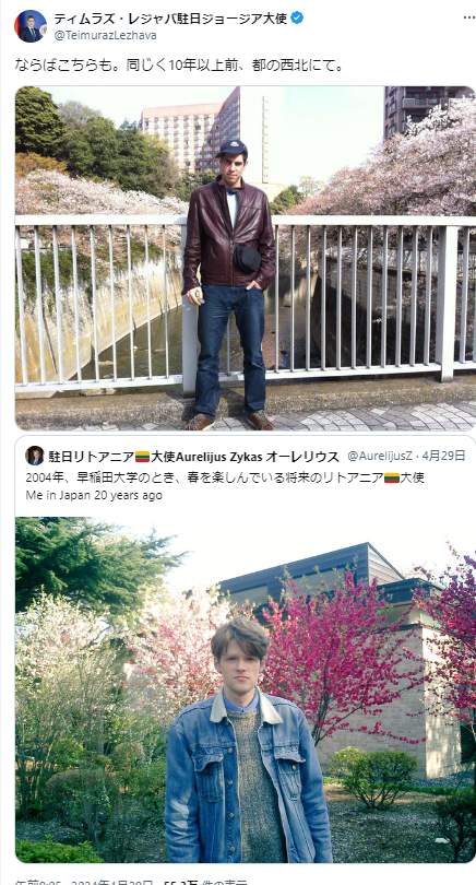 リトアニア&ジョージア駐日大使が「イケメン」ほめ合う 若かりし頃の「都の西北」写真にほっこり