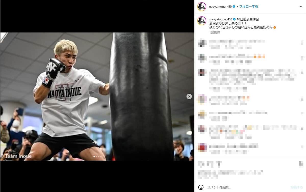 井上のサンドバッグ打ち(井上のインスタグラムより)