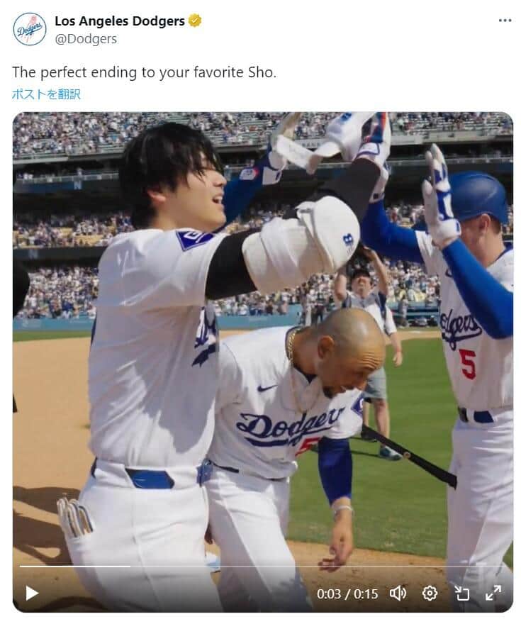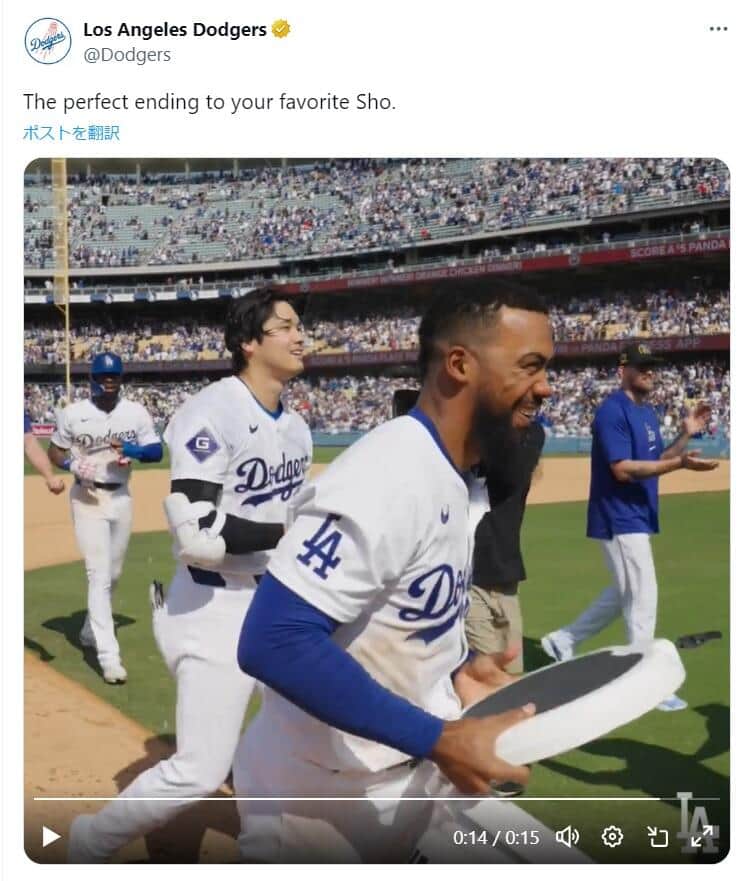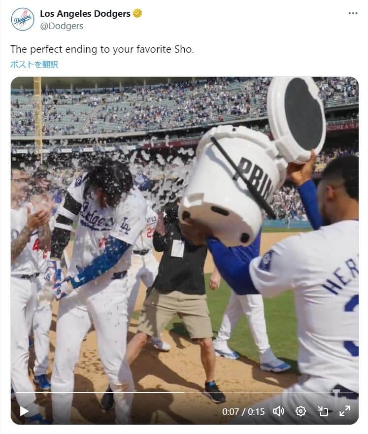 びしょ濡れ姿の大谷翔平も「絵になります!」 「迫力満点」サヨナラヒット後の写真に反響