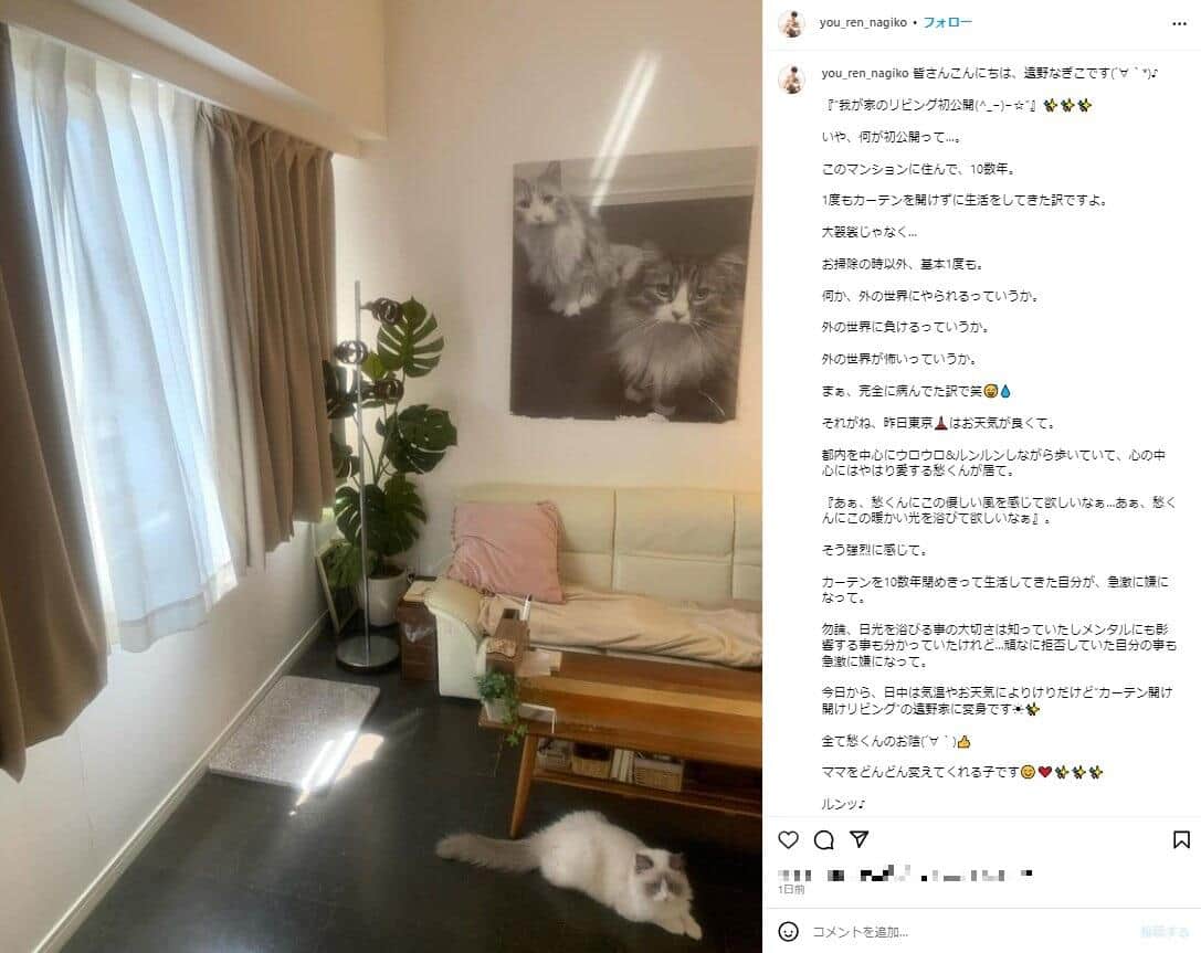 遠野なぎこ、カーテン閉めきり生活「10数年」...ついに終止符 「ママをどんどん変えてくれる」愛猫から好影響